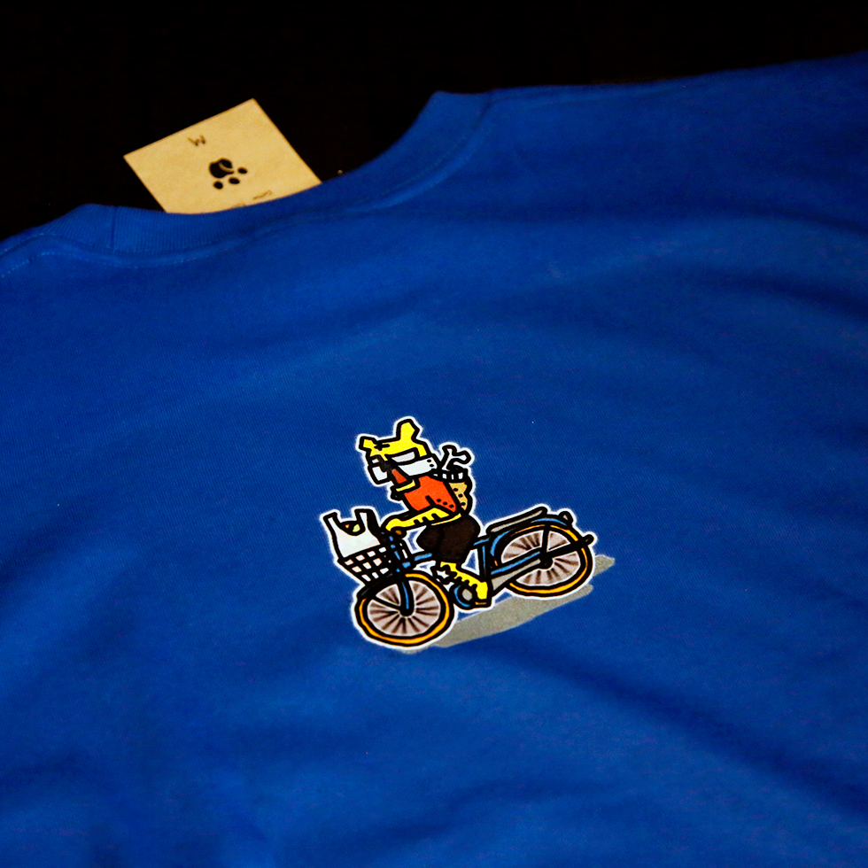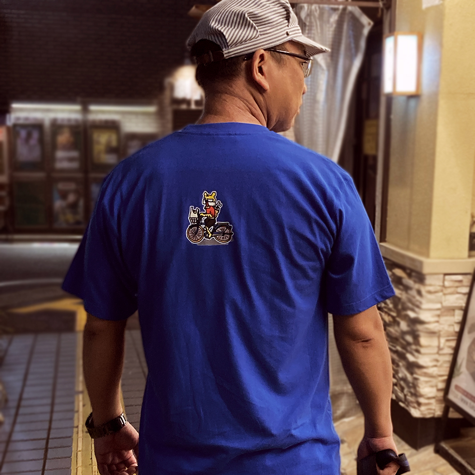 街なかで早くも視線集中。高性能AIロボット・メガタイガーをモチーフにした新作Tシャツが完成した。鮮やかなブルー地に、前面はエネルギーフィストを突き出すメガタイガーのインパクト大なアート。背面には、ゆるっとおでかけ(配達?冒険?)中のメガタイガーがワンポイントでプリントされ、前後で物語が続く“二面構成”が楽しめる。